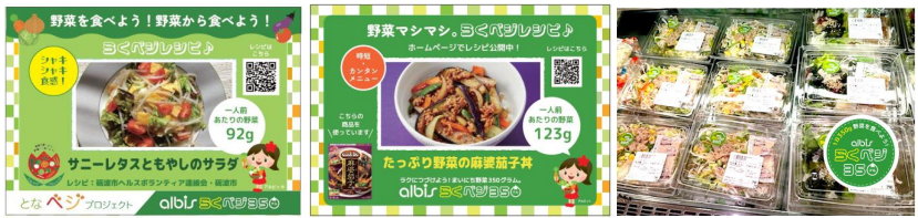 通年展開する「らくベジ」活動のほか、砺波市の野菜摂取促進企画「となベジプロジェクト」とのタイアップレシピ提案(となみ店)や、富山県と連携した「県産野菜と米粉を使ったメニューの試食会」(大島店)、また全店で味の素(株)会社とのタイアップレシピの提案を行う。