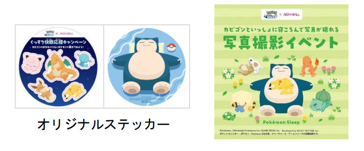 「Pokémon Sleep」は、就寝中に枕元にスマートフォンを置くだけで、睡眠を計測・記録・分析できるアプリ。睡眠リズムを整えて、ポケモンのいろいろな寝顔を見つけて楽しむことができる。8月23日(金)~9月5日(木)の間、イオンモールアプリと「Pokémon Sleep」アプリをダウンロードした人を対象に「Pokémon Sleep」オリジナルステッカーをプレゼント。さらに、9月8日(日)までは時間指定制でカビゴンの横に寝ころんで撮影ができる写真撮影イベントも開催する。