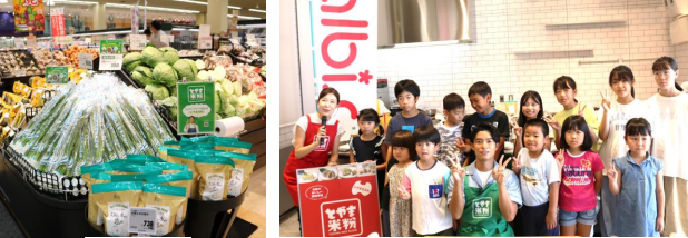 9月からの実施に向け、8月27日(火)県出身の俳優である池田航さんを講師に迎えた親子試食会を大島店で開催し、安心で美味しい県産米粉及び県産野菜の魅力を発信した。