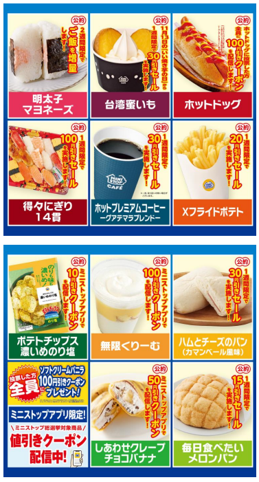 投票した人全員に「ソフトクリームバニラ100円引きデジタルクーポン」をプレゼントする。またミニストップ総選挙の実施期間中、総選挙立候補商品にはミニストップアプリのクーポンを配信するなど、総選挙への参加を促す。