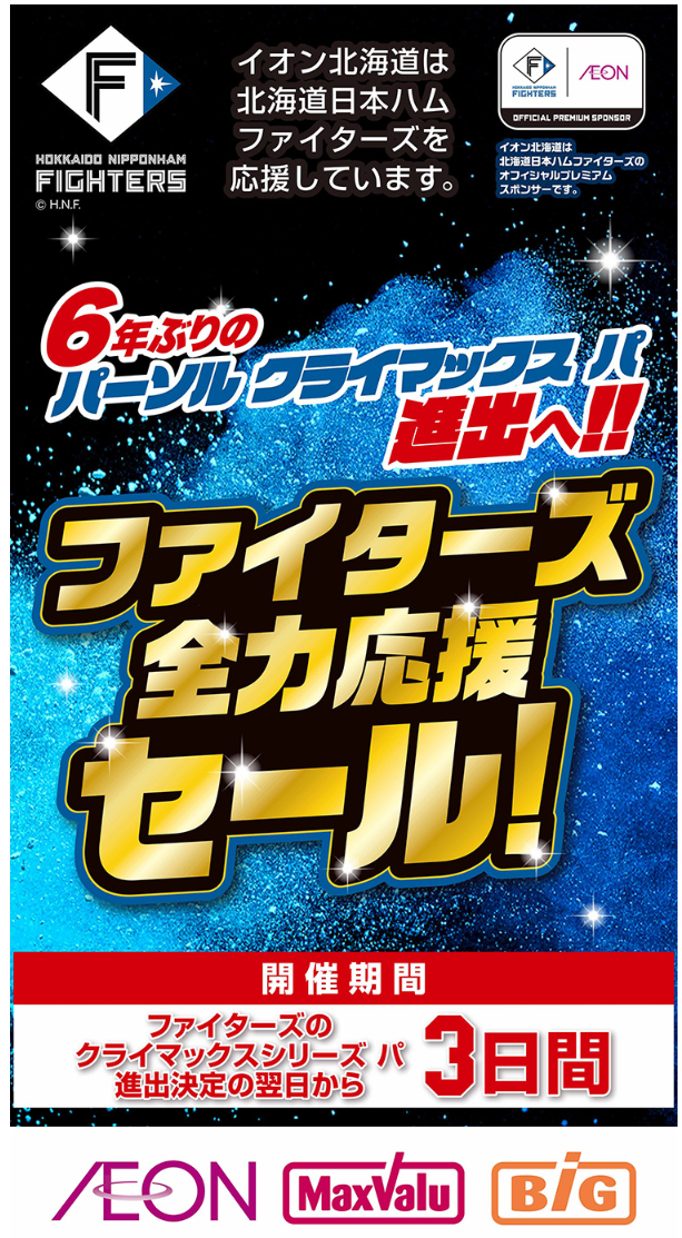 イオン北海道news|クライマックス パ進出でファイターズ全力応援セール