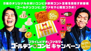 (株)ファミリーマート(東京都港区、細見研介社長)は、Prime Videoで配信されるAmazon Originalの新番組「最強新コンビ決定戦 THE ゴールデンコンビ」とコラボレーションしたキャンペーンを 10月29日(火)から沖縄県を除く全国のファミリーマート約1万5900店舗で実施する。