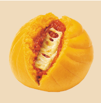 トマトソースの中心にチーズを加えた、ピザのような味わいが楽しめる中華まん。トマトソースには、チーズの濃厚さに合うよう、ミネラルが多く甘さが特長のレーズィナ産トマトを使用している。価格は168円。