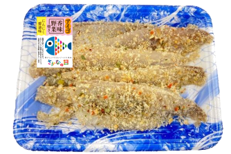 また長崎県で漁獲された未利用魚「アイゴ」を使用した商品として、「香味パン粉焼き用」を販売する。「アイゴ」は海藻を食べてしまい、加工もしづらく、市場に出回らない未利用魚。これに香味パン粉をまぶして商品化する。アイゴは淡泊な白身魚だが、揚げ焼き調理をすることで、外はカリっと中はふっくらとした食感になる。