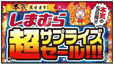 (株)しまむら(埼玉県さいたま市、鈴木誠社長)は11月20日(水)から「しまむら超サプライズセール」を開催する。ファッションセンターしまむらでは11月13日(水)から「大感謝祭」を開催していて、連続での需要喚起策だ。