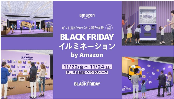 また今年は、「Amazon ブラックフライデー」での感謝の気持ちを込めたギフト選びのわくわく感を体験できるイベント「BLACK FRIDAY イルミネーション by Amazon」を、11月22日(金)から11月24日(日)まで、東京新宿区のサナギ新宿前イベントスペースで実施する。