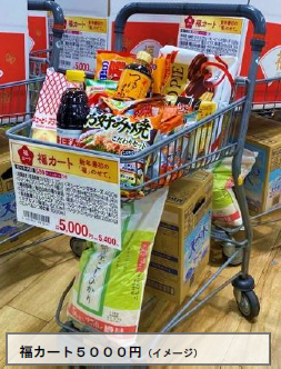 今年は“集う”ニーズに対応し、蟹や牛肉、寿司など食卓を豪華に彩るごちそうや、大容量パックの惣菜などのハレの日の展開を強化する。また、2025年は2024年を上回る値上げラッシュも予想されることから、さまざまな商品を買物カートに詰め込んだ人気企画 「福カート」 では、価格高騰中の 「米」 や小麦粉など消費頻度の高い10点を厳選した5000円の 「食品福カート」 や、初の 「家電福カート」 なども展開する。