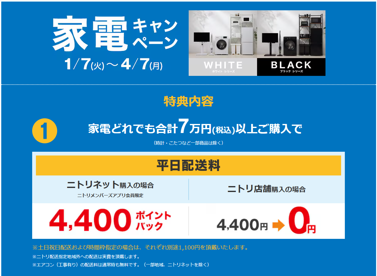 ニトリnews|1/7~4/7の期間限定・新生活応援の「家電キャンペーン」実施