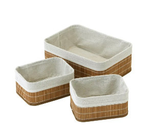 「Athena Life バンブーバスケット3点セット ハーフ&クォーター ブラウン」は、大バスケット(ハーフ)1個、小バスケット(クオーター)2個の3点セット。価格は998円。