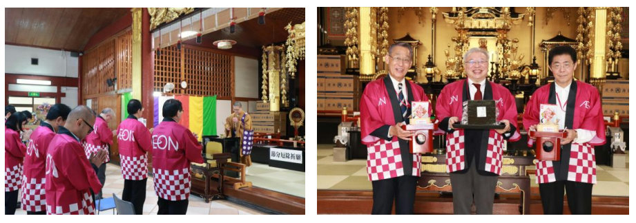 イオン琉球(株)(沖縄県島尻郡、鯉渕豊太郎社長)は 1月20日(月)、2月2日(日)の節分に先立ち、那覇市若狭の護国寺において、節分恵方巻に使用する焼き海苔約7万1400枚と豆まき用の福豆1785袋に、無病息災を願い厄除祈願を行った。