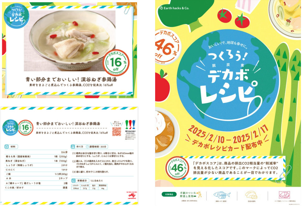 (株)東急ストア(東京都目⿊区、大堀左千夫社長)はEarth hacks(株)(東京都渋谷区)と協業し、脱炭素につながる食材・レシピを紹介する「つくろう!デカボレシピ」企画を、2月10日(月)から2月17日(月)に実施した。