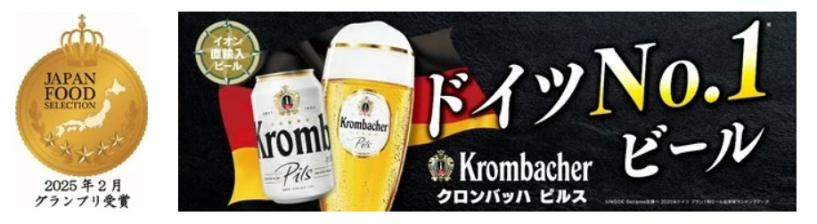 イオン(株)(千葉県千葉市、吉田昭夫社長)は、イオンリカーが販売するイオン直輸入ビール「クロンバッハ ピルス」が、「第84回 ジャパン・フード・セレクション」食品・飲食部門で最高賞のグランプリを受賞した。