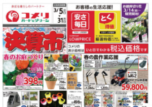 流通スーパーニュース > 販促 > コメリnews|店舗とショッピングサイトで「決算市」を開催 コメリnews|店舗とショッピングサイトで「決算市」を開催 販促 / 2025年03月07日 ツイート (株)コメリ(新潟県新潟市、捧雄一郎社長)は 3月5日~3月31日(月)の期間、コメリ各店舗とオンラインショッピングサイト「コメリドットコム」において「決算市」を開始する。 オンラインショッピングサイト「コメリドットコム」のネット限定お買い得商品(一部)は以下の通り。 ツイート