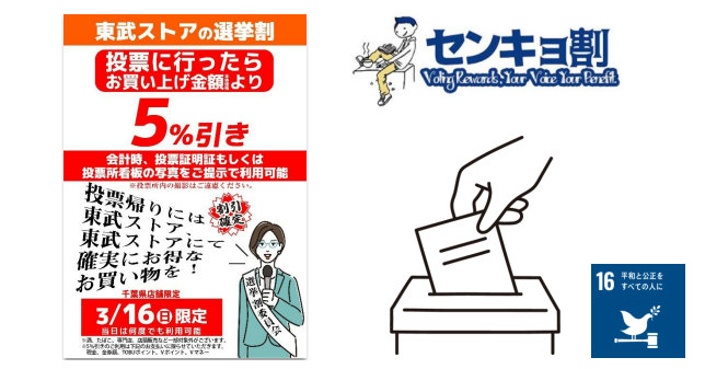 流通スーパーニュース > 販促 > 東武ストアnews|3/16は千葉県知事選挙「センキョ割」を千葉12店舗で実施 東武ストアnews|3/16は千葉県知事選挙「センキョ割」を千葉12店舗で実施 販促 / 2025年03月12日 ツイート (株)東武ストア(東京都板橋区、木村吉延社長)は3月16日(日)限定で、東武ストア千葉県内12店舗で「センキョ割」を実施する。3月16日に投開票される千葉県知事選挙の投票済証明証または投票所の看板の写真をレジで提示すると、購入金額から5%引きとなる。 東武ストアはこのキャンペーンを通して、幅広い世代の有権者が少しでも政治に興味を持ち、選挙に足を運ぶきっかけとなることを目的としている。 ツイート