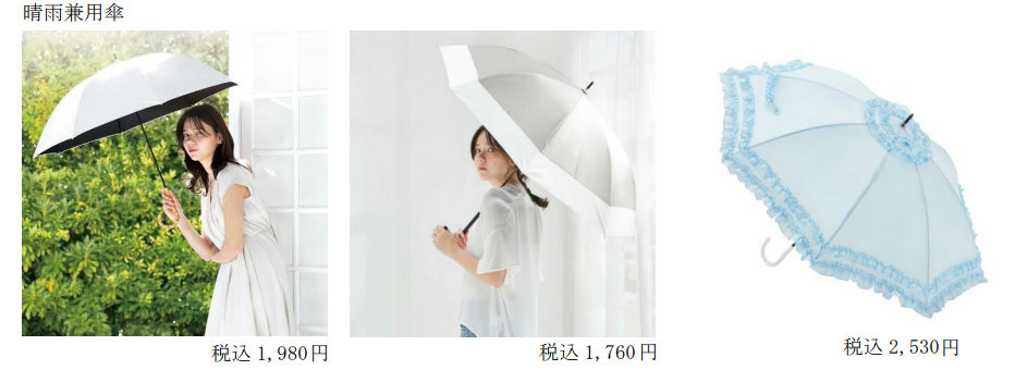紫外線対策商品として晴雨兼用傘やアームカバー・ネックカバーなどを販売する。サンリオキャラクターとのコラボ商品も展開する。