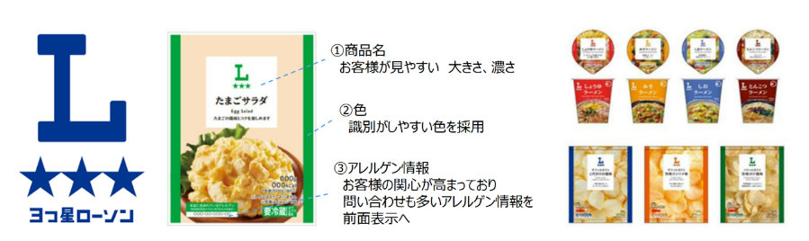 「L basic(エル ベーシック)」「L marche(エル マルシェ)」やデイリー系商品、店内調理商品など、現行のプライベートブランドの約95%の商品を「3つ星ローソン」のブランド名に統一し、10月までに順次商品を刷新していく。