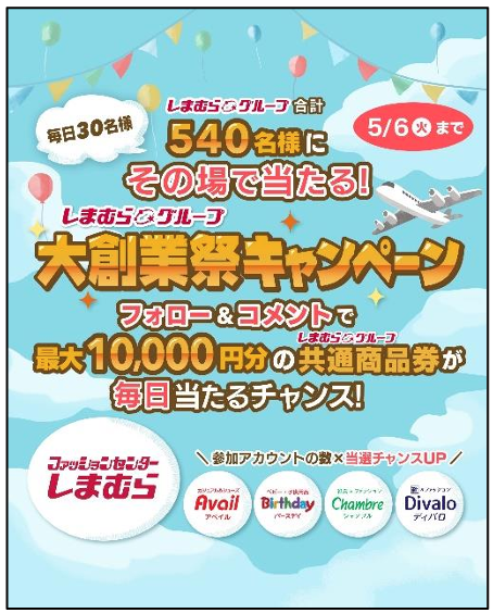 しまむらnews|グループで大創業祭4/23から展開、商品券キャンペーンも実施