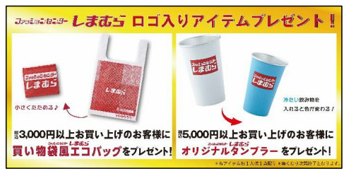 さらにPOP UP STORE で3000円以上(税込み、以下同)の購入者に「買い物袋風エコバッグ」を、さらに5000円以上の購入者に「タンブラー」をプレゼントする。