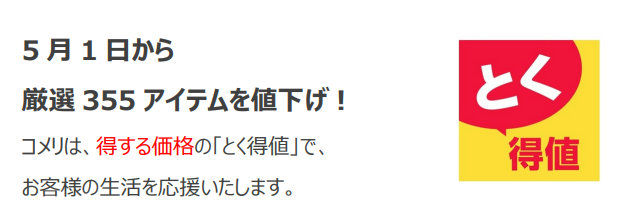コメリnews|5/1から「とく得値」厳選355品目を値下げ