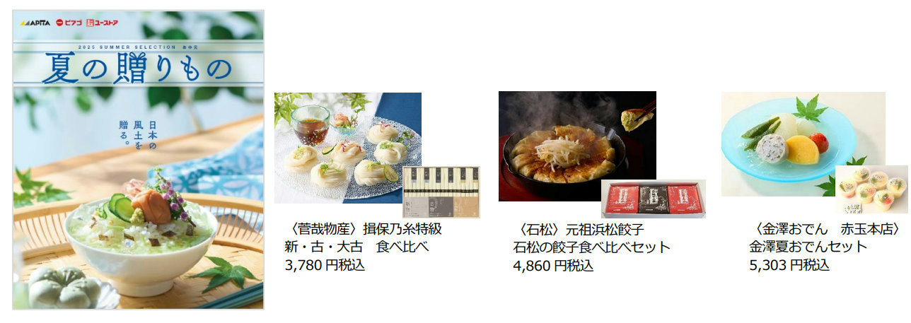 ユニー(株)(愛知県稲沢市、榊原健社長)は5月12日(月)から、「2025年夏ギフト」の予約受付を、オンラインショップとアピタ、ピアゴ、MEGA ドン・キホーテ、UNYの計131店舗で開始した。