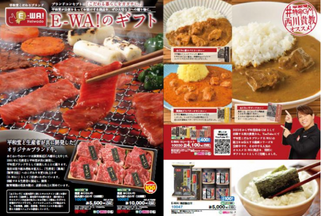 平和堂ブランドのE-WA!では、カレーや海苔など夏向けのギフトセットや季節のフルーツギフトを揃える。また、平和堂の出店地域 2 府7県の名産品を揃えた「じもとのうまいもの」などをラインアップする。