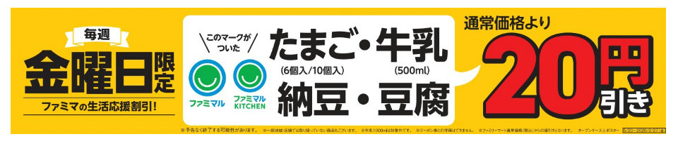 ファミマnews|5/23から毎週金曜日たまご・納豆・牛乳・豆腐が20円引き