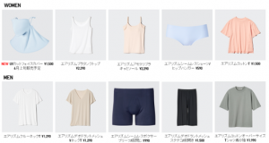 「青いユニクロ」では、どんな気候でも快適な心地よさを提供する「エアリズム」商品を展開する。「エアリズム」はインナーだけでなく、長袖やTシャツ、グッズまで、豊富なバリエーションを取り揃える。