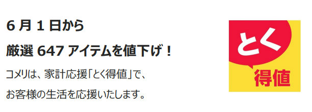 コメリnews|6/1から「とく得値」厳選647品目を値下げ