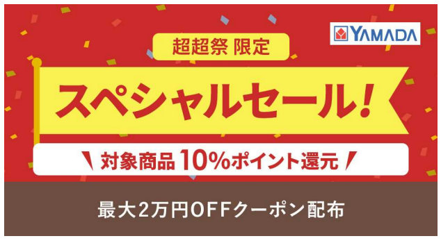 「ヤマダデンキスペシャルセール」は、対象商品の購入で10%のポイント還元や、最大2万円割引クーポンが配布されるなど、おトクな期間限定のスペシャルセールとなる。