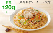 野菜120g以上。たっぷり野菜が入った醤油味のビーフン。小海老がアクセントになっている。348円。
