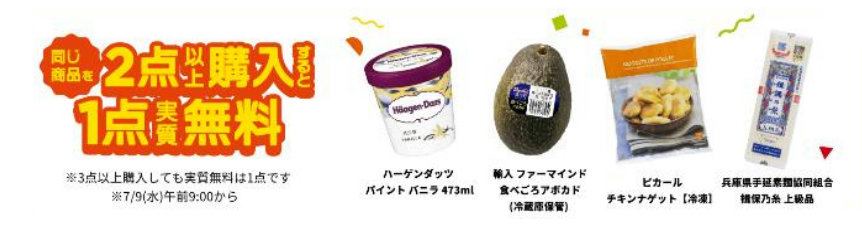 また、セールの一部期間で同じ商品を2点以上購入すると、1点が実質無料企画を実施する。
