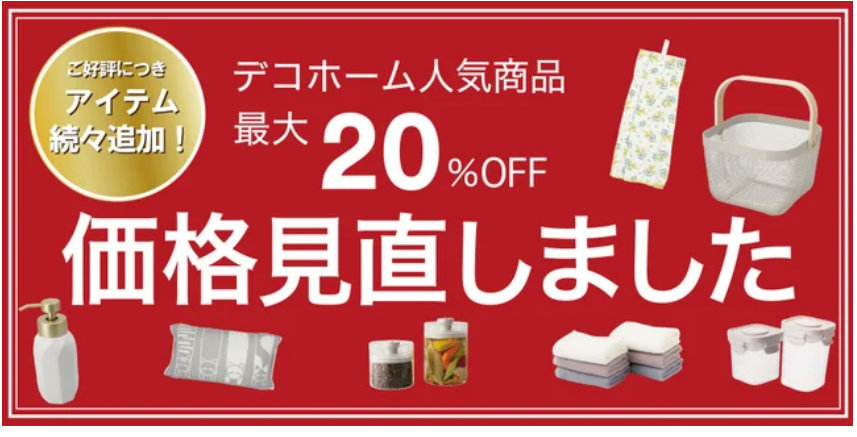 デコホームでは、2024年6月中旬から累計1281アイテムの価格を⾒直してきた。今回新たに⼈気商品122アイテムの価格の⾒直しを実施する。