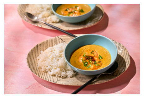 「成城石井自家製 海老とカシューナッツのカレー(プラウンマサラ)」755円。開発者の元同僚であるインド人シェフがつくっていたカレーを参考に試作を繰り返し作り上げた一品。海老エキスを使用し、海老をルーで煮込まずにトッピングし、その上から海老のオイルをかけることで、一皿で海老の風味と旨みを存分に楽しめるカレー。ルーにココナッツクリームと生クリーム、自家製のカシューナッツペーストを使用することでコクとクリーミーさを出し、ヨーグルトとトマトで適度な酸味を出している。