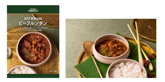 レトルトカレー「成城石井 ビーフルンダン 150g」755円。インドネシアの煮込み料理の一種であるビーフルンダンを、本格的な味わいではありつつも幅広い人々に楽しんでもらるよう商品を開発。バイヤーが一番大切にした具材感を楽しめる商品にするため、牛すね肉を製品中に4割使用することで、しっかりとした具材感を表現している。カシューナッツペーストを使用し、粗目に砕いた落花生とカシューナッツを入れることでカレーにコクを出すとともに食感にアクセントを加えた。
