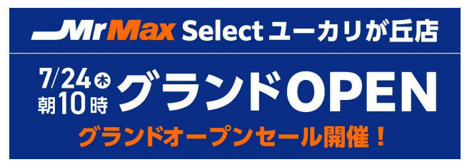 (株)ミスターマックス・ホールディングス(福岡県福岡市、平野能章社長)は、7月24日(木)の「MrMax Selectユーカリが丘店」のグランドオープンを7月24日(木)~7月30日(水)の期間で開催する。