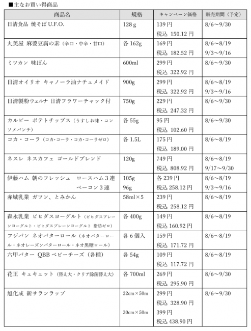 食品、日用品を中心とした100品目以上の商品群の価格を見直して販売する。