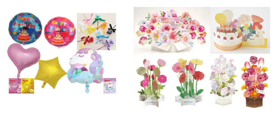 そのほか、誕生日や推し活向け商品からは、気持ちが盛り上がる「バルーン(スティック・フィルム)」98~2480円や、「誕生日カード」各種198~1780円などを展開する。