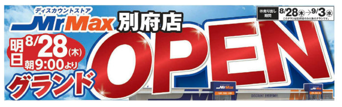 MrMax news|「MrMax 別府店」8/28グランドOPENセール開催