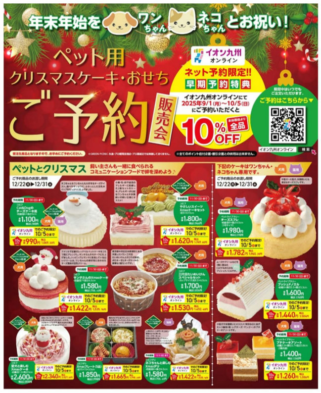 イオン九州news|ペット向けクリスマスケーキ&おせち予約受付開始