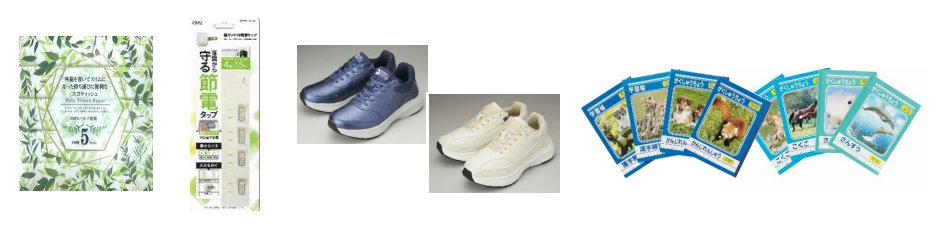 また、まとめ買いセールは「外箱を省いてスリムになったエコティッシュ 5P」263円が2点で495円、「紳士・婦人 WALK AWAYスニーカー」4389円が2点で6600円、「オリジナル学習帳各種」131円が3点で330円など、さまざまなアイテムを揃える。