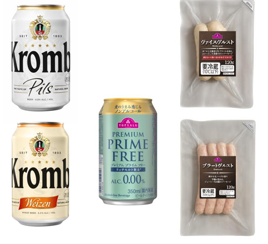 累計販売本数1000万本を突破したイオン直輸入のドイツビール「クロンバッハ」(2021年1~12月ブランド別実績 INSIDE誌調べ)や、ノンアルコール飲料トップバリュ「プレミアム プライムフリー 0.00%」、期間限定で取り扱うドイツソーセージやピザ、バルセットなど“本場気分”を味わえる商品を品揃えする。