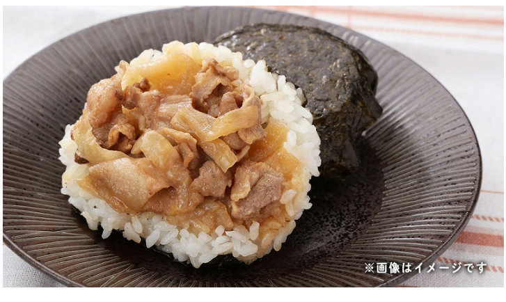 B-1グランプリ・十和田バラ焼きゼミナール監修「ばくだんおにぎり十和田バラ焼き」は、豚肉と玉ねぎを甘辛いタレで炒めた十和田バラ焼きをサンドしたおにぎり。302円(税込価格、以下同)。ご当地:青森県。