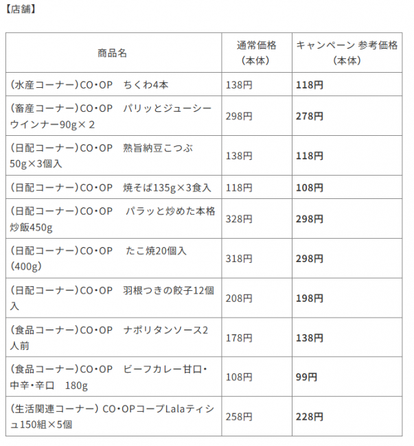日生協news|「くらし応援全国キャンペーン」第4弾/コープ商品を特価販売