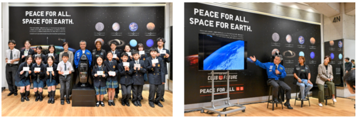 「Club for the Future」アンバサダーで、Tシャツのデザインにも携わった宇宙飛行士のサイアン・プロクター氏と、日本人初の国際宇宙ステーション(ISS)の船長を務めた若田光一氏が登壇。宇宙の視点から地球を見つめ、平和を考えることについて語り合った。