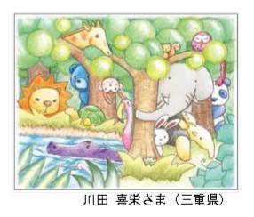 「Friend with Nature」をテーマに太陽や虹、動物や昆虫たちが色彩豊かに描かれている良い作品だ。