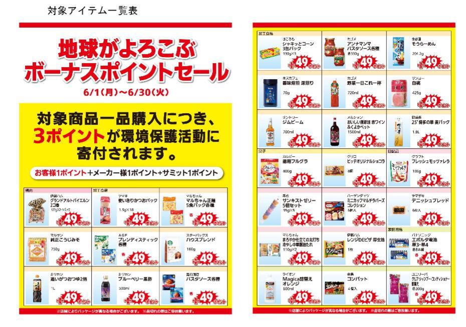 サミット定番企画「地球がよろこぶボーナスポイントセール」6月通しで実施中