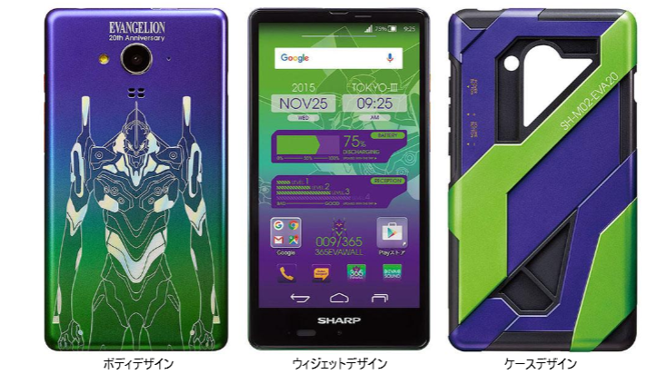 エヴァンゲリオン20周年を記念したオリジナルデザインのスマホで、「365EVAWALL」「EVASOUND」の2つのアプリケーションを搭載している。「365EVAWALL」はスタジオカラーのアニメーターが特別に描き下ろした限定デザインを含む、全365枚の壁紙を格納したオリジナルアプリ。「365EVAWALL」は、エヴァンゲリオン劇場版で実際に使用されている効果音21種と、事前アンケートで人気だったキャラクターの音声を34種が収録されているアプリ(一部のキャラクターの音声は、アプリ内のイベントをクリアすることによって使用可能)。