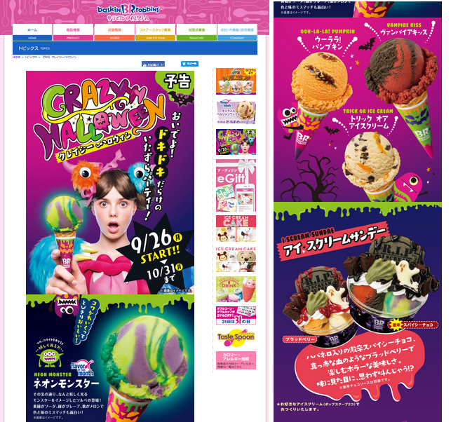 ハロウィンといえば、サーティワン アイスクリーム。「クレイジーハロウィン」をキャンペーンテーマに、新&限定フレーバー商品を9月26日からハロウィン当日までの1カ月余り展開する。