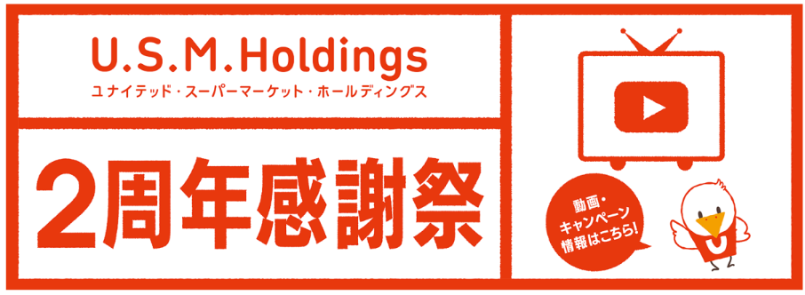 それを記念し、U.S.M.Holdingsグループ3社で、3月1日(水)~3月31日(金)までグループ全503店で、「U.S.M.Holdings 2周年感謝祭」を開催する。
