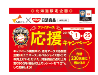 「道内アークスグループ&日清食品共同企画 ファイターズ応援キャンペーン」(応募締切:6月26日(月)当日消印有効)